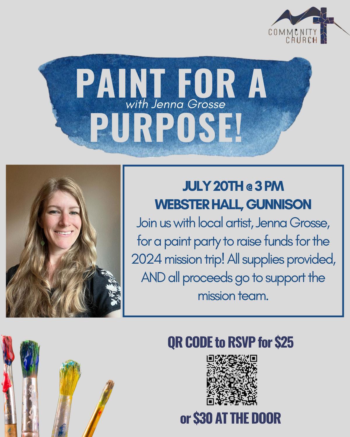 PAINT PARTY FUNDRIASER: Community Church will hold a paint party fundraiser with local artist Jenna Grosse on July 20 at 3 p.m. at Webster Hall in Gunnison. All painting supplies will be provided. Tickets are $25 in advance or $30 at the door. All proceeds will support the church’s Cuba mission team. RSVP by calling 970-901-6315 or 978-502-3564.