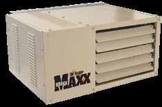 BTUs per hour • Heats up to 4,700 sq. ft. • Piezo push-button ignition • Standing pilot for increased safety • Thermoelectric safety valve to shutoff the gas if the flame goes out • Uses 100-lb. tank • Fully assembled and ready to use • Includes 10' hose and regulator • P.O.L. tank connection MRHHS200CV Heavy-Duty Propane Convection Heater NOMAD™ Dual Fuel Construction and Tent Heater With Ring and 10-Foot Duct ( Natural Gas or Propane ) 170,000 to 250,000 BTUs per hour • 2,100 cfm high-output fan • Electronic spark ignition • Thermostat with 20' cord, 15' gas hose, and regulator • Heats up to 6,250 sq. ft. MRHHS250TC Big Maxx Natural Gas Unit Heater 50,000 BTUs per hour • Ideal for heating a garage, barn, or work space with a reliable heat source • Heats up to 1,667 sq. ft. • Spark ignition • Includes 2 angle brackets for ceiling mount • 8' of clearance from floor to base of heater required • 1/2" gas connection • Natural gas to liquid propane conversion kit included • Thermostat sold separately MRHMHU50 Wall Thermostat for Big Maxx Unit Heaters • Compatible with the Big Maxx series of unit heaters • Mounts on wall • Manual slider • Analog MRH10371
