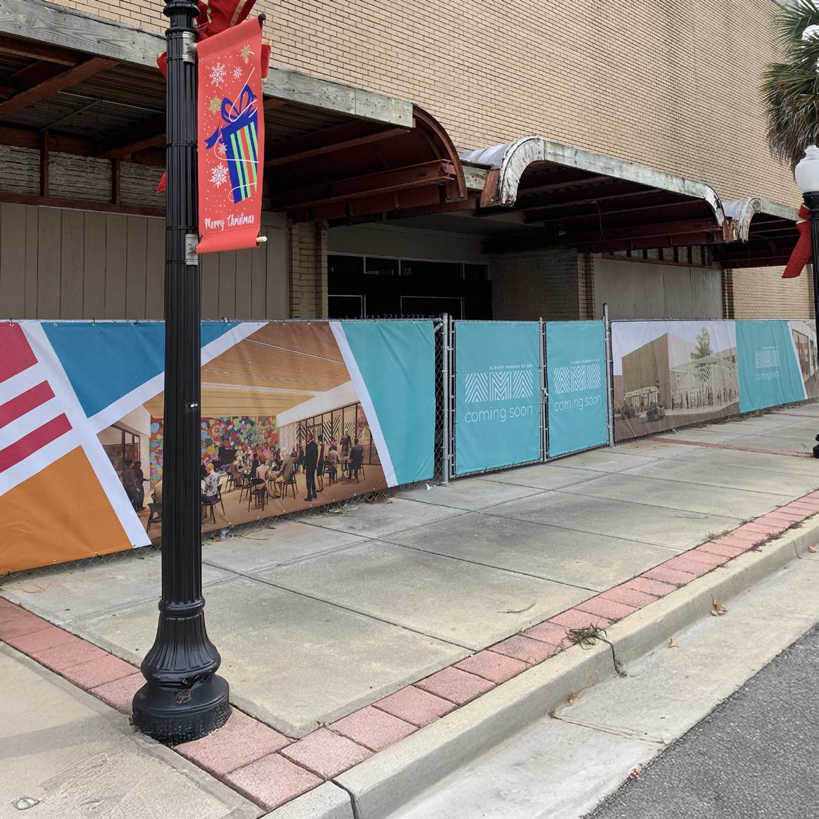 One highly visible sign is the hoarding signage that was attached in early December to the construction fence surrounding the property on Broad Avenue and Washington Street. The 400-foot-long signage depicts renderings of the new museum. The signage was made possible by a donation from AMA Capital Campaign Committee Members Mark and Marsha Taylor.