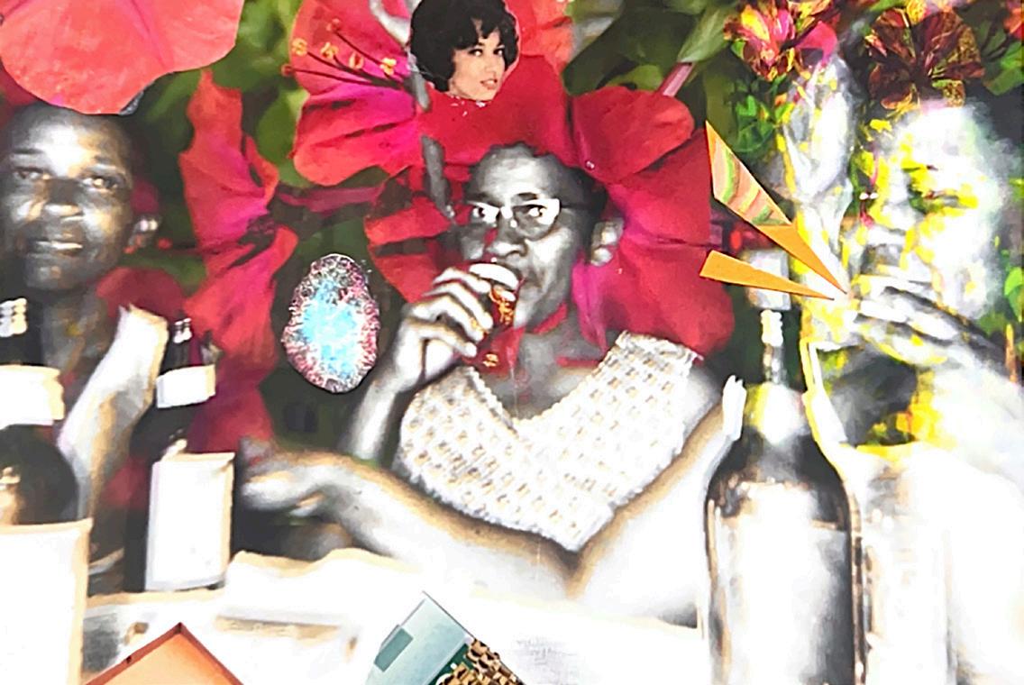 Above: Kimberly Anderson, great, great Aunt Frances n’em at 4 o’clock, 2025, mixed media collage.