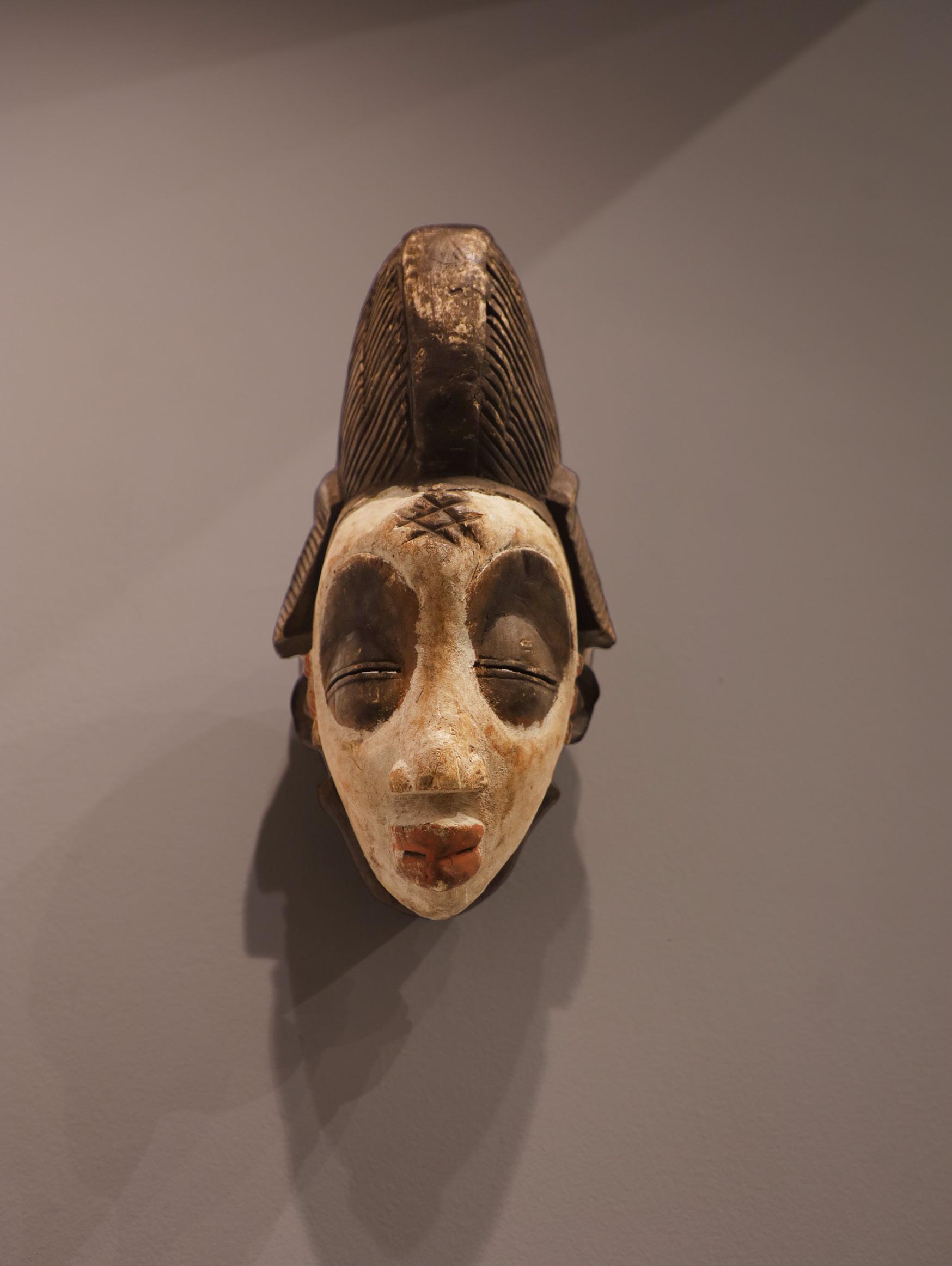 This mask from the Punu community in Gabon is one of the few museum purchases in the Sub-Saharan African collection. Punu Maiden Spirit Masks always share very key and iconic features that denote the iconic characteristics of a spirit ancestor. The Punu community is historically and traditionally deeply rooted in spiritual practice and ritual. Additionally, Punu culture is matrilineal, making the Punu Maiden Spirit Mask an important facet in this community’s traditions.