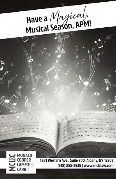 Albany Pro Musica is composed of 64 to 100 auditioned volunteer singers from several counties and states. Albany Pro Musica offers four series concerts each season, including “Artist Series” concerts which bring worldrenowned artists and ensembles to share the stage with APM; “Masterworks Series” performances of oratorios and other large-scale choral works with orchestra; and an annual Christmas program, which has become a wonderful holiday tradition in the region. Each season is deliberately curated to include classical masterpieces from the choral canon, new compositions from modern and contemporary composers, and popular selections from the worlds of Broadway, traditional and folk music, and more.