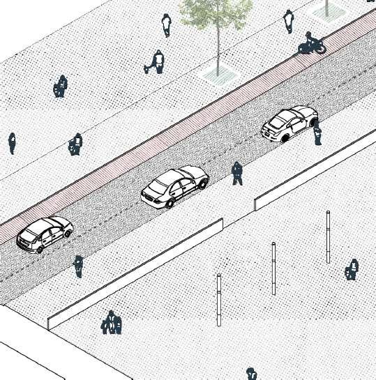 LapropuestaurbanarevitalizaelPuerto deSagunto integrandoedificiospatrimonialesy antiguostrazadosferroviarios, creando un espacio dinámico y conectado. La Avenida 9 de Octubre, antiguo eje ferroviario, se mantiene como arteria principal, unificando el patrimonio industrial y la memoria histórica. Conecta el Zócalo de la Nave de Talleres, epicentro comunitario, con el malecón, pulmón verde de la comunidad. Los caminos del malecón y el sistema dunar se revitalizan, vinculando la ciudad con el mar. Estas intervenciones humanizan los espacios, fomentan la confluencia y el uso comunitario, y revitalizan la identidad industrial.