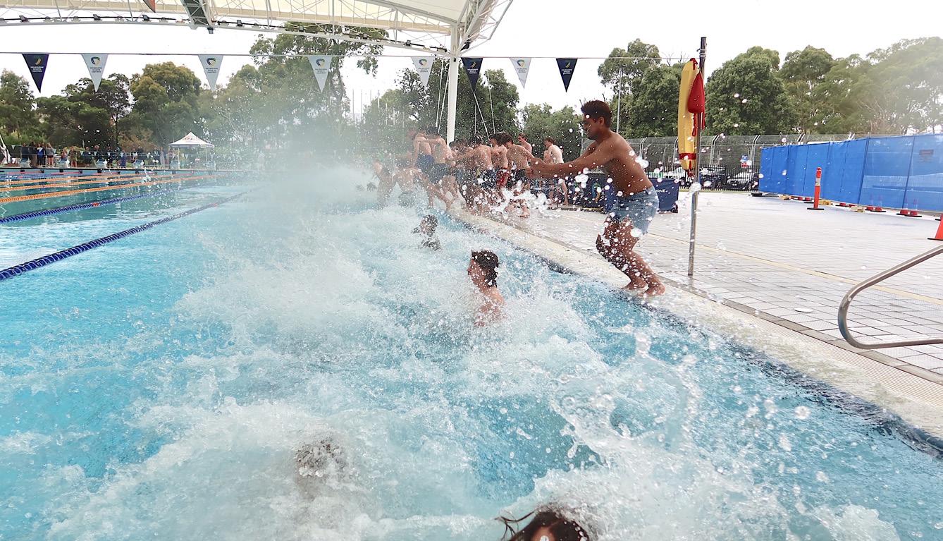 The Year 12s also marked the end of the carnival - and their final year at APC - by lining up for their ceremonial Big Dive.