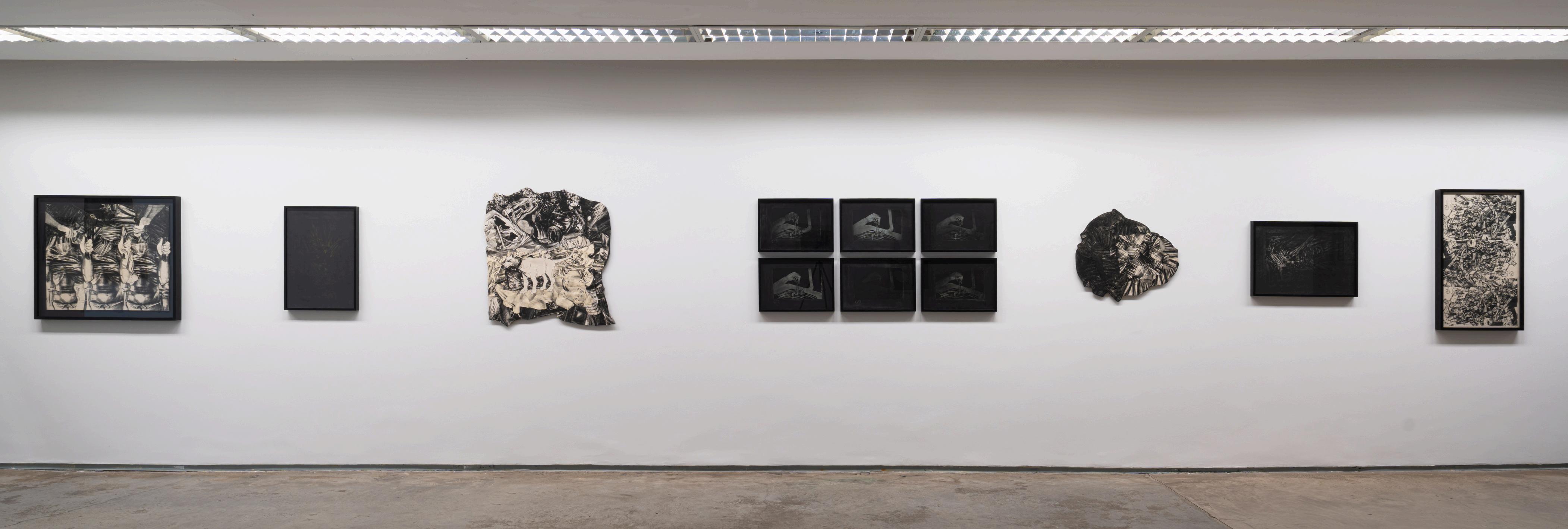 The memory that operates the cutting and joining of fragments –which, at this point, differs in part from the original lithographs, where the connections more closely resembled the stream of consciousness arising from the simultaneity of the present – is presented in Catechism and Irene, from Joy to Glory (both by Marcelo) as the calculated montage of a narrative that processes, stitches together with a thread a plot on the verge of being lost, ranging from a personal relationship (the religious manuals of the artist's mother) to the story of an anonymous figure and the city of Recife (with the material recovered in the second work). This dynamic of recovery as invention finds its parallel in the process by which the two artists focus on producing the series in co-authorship, which is also an accumulation, montage, and crossing of each artist's memories awakened by that original and the responses engendered therein, with all the evocations they carry with them. What could be seen as an act of hostility (one artist acting upon the work of another, as was often the case with Salle and Schnabel) reveals itself in our case as one of hospitality, considering the receptiveness and permeability of exchanges that unfold during this project, in which, to recall a statement by Lygia Clark, "making two into one multiplies laughter."