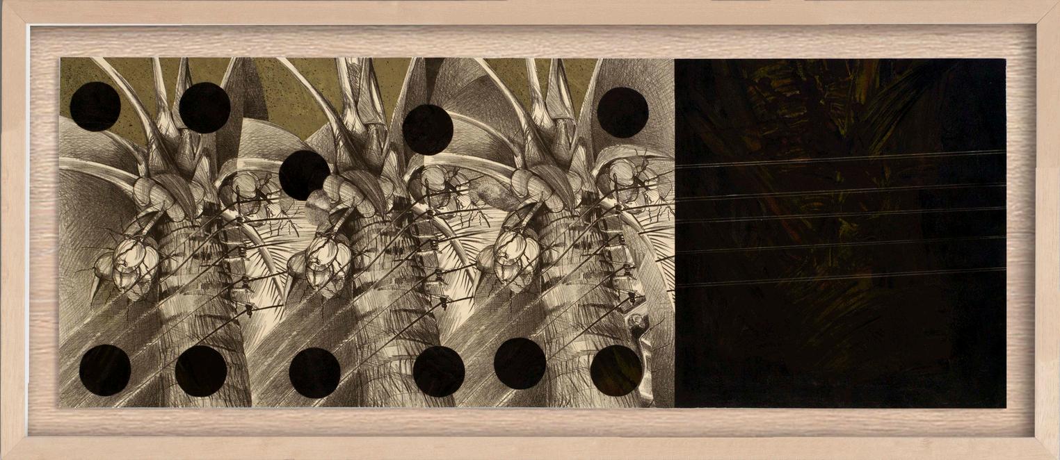 Liliane Dardot e Marcelo Silveira. em Arejar, Palmeira e Fiat lux. Litografia e colagem. 42,5 x 90 cm. 1982/2025. Lithograph and collage. 42.5 x 90 cm. 1982/2025.