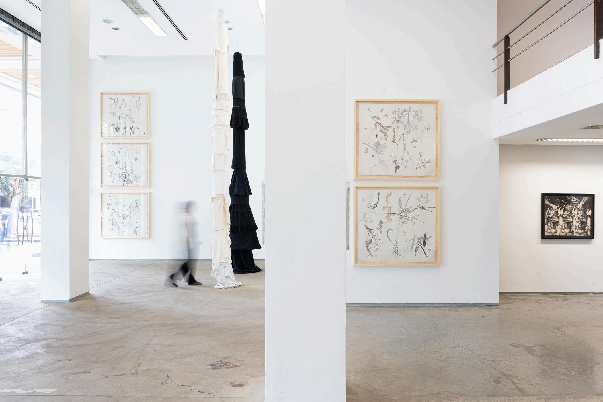 Another point of contact constructed a posteriori is revealed between the set of Accumulations of lithographs from the 1970s80s, whether with the visual vocabulary of Revista, by Marcelo, or with the superimpositions of glazes, redesigns and transparencies of the paintings and the series of drawings Mato Dentro, by Liliane (and also in the accumulation and repetition as structuring