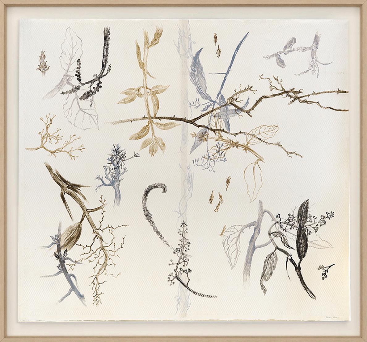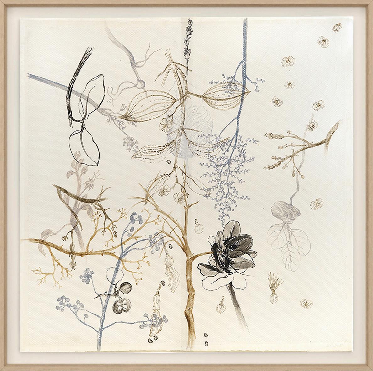 Liliane Dardot e Marcelo Silveira. da Flor do mato em Secret life. Recorte e sobreposição de litografias. 80 x 61 cm. 1985/2025.