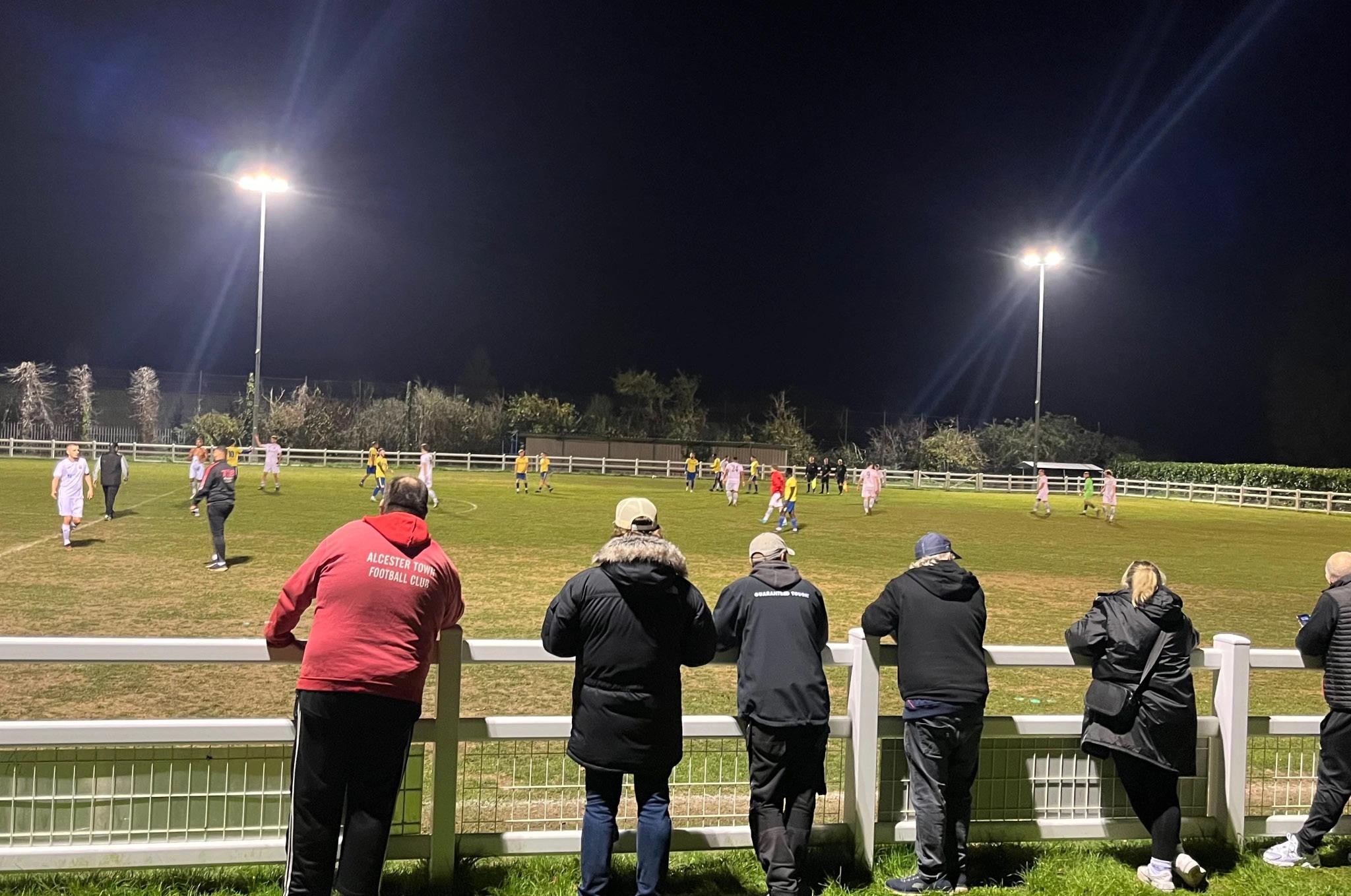 The hosts responded with a flurry of chances, including a strike that rattled the crossbar late in the half, but Alcester held firm to take a 1–0 advantage into the break.