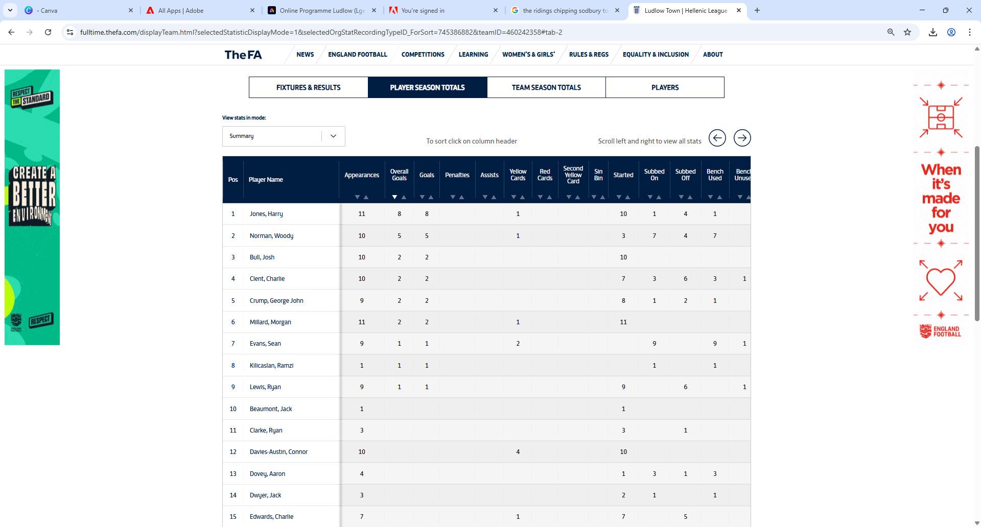 • Ambassador Evesham Football League