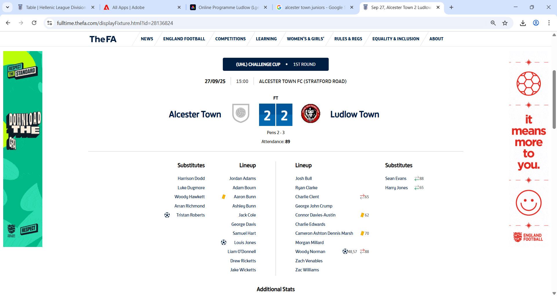 Full-time: Alcester Town 2–2 Ludlow Town (Ludlow win 3–2 on penalties)