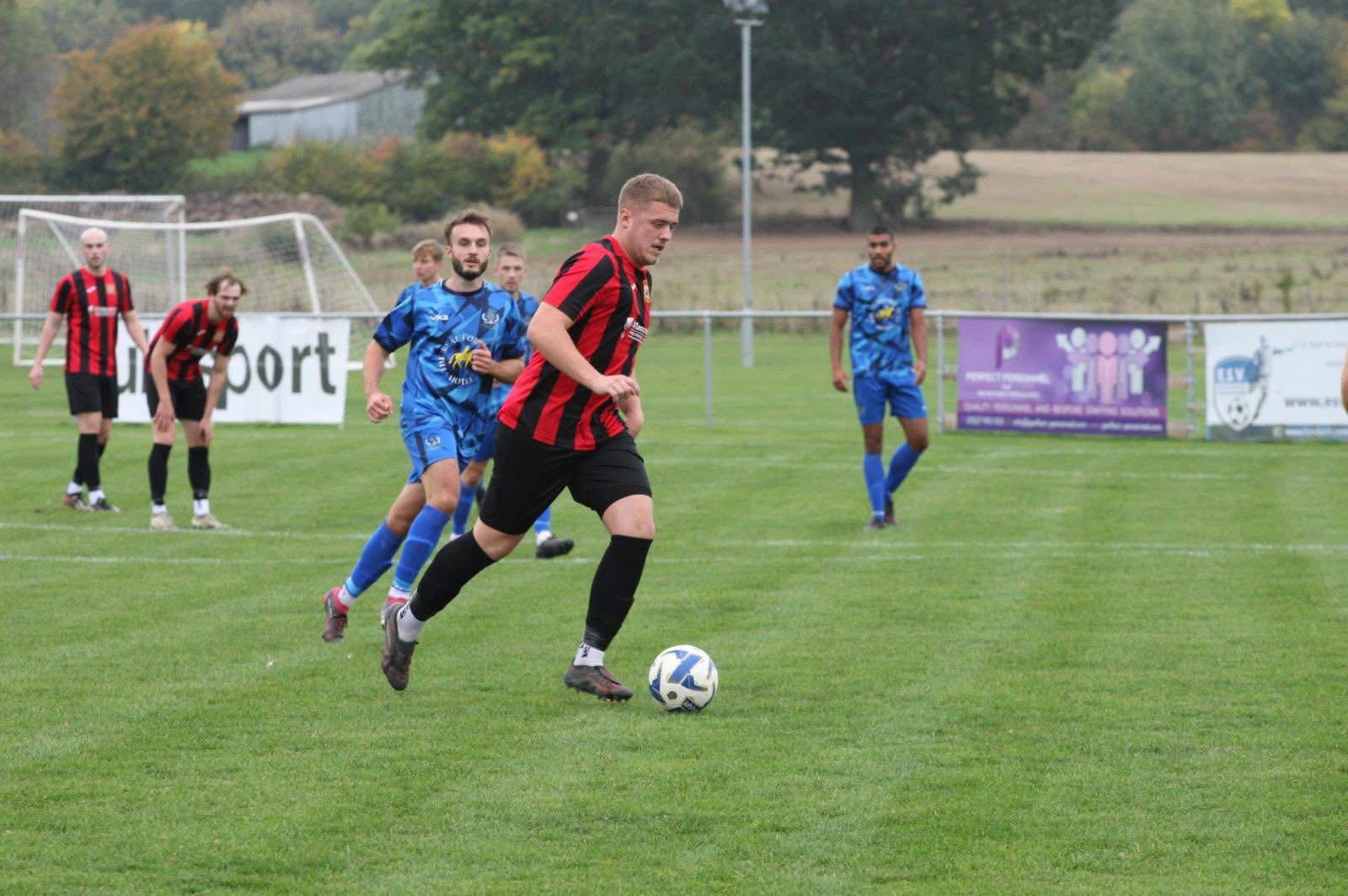 Alcester responded determinedly, and their persistence paid off in the 70th minute. Skelton, in sensational form, drove into the box, shifted onto his left foot, and slotted the ball into the bottom corner to equalise, his eighth goal in as many games, much to the delight of the home supporters.