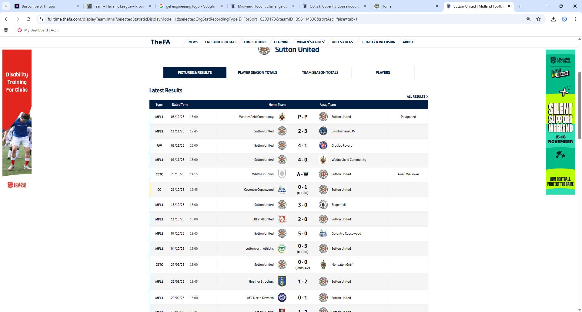 ISSUE 8 £ 3.00 v Briscombe & Thrupp FC 15/11/25 - KO 3:00pm (Hellenic Division 1) v Sutton United 18/11/25 - KO 7:45pm (BFA Midweek Floodlit Cup)