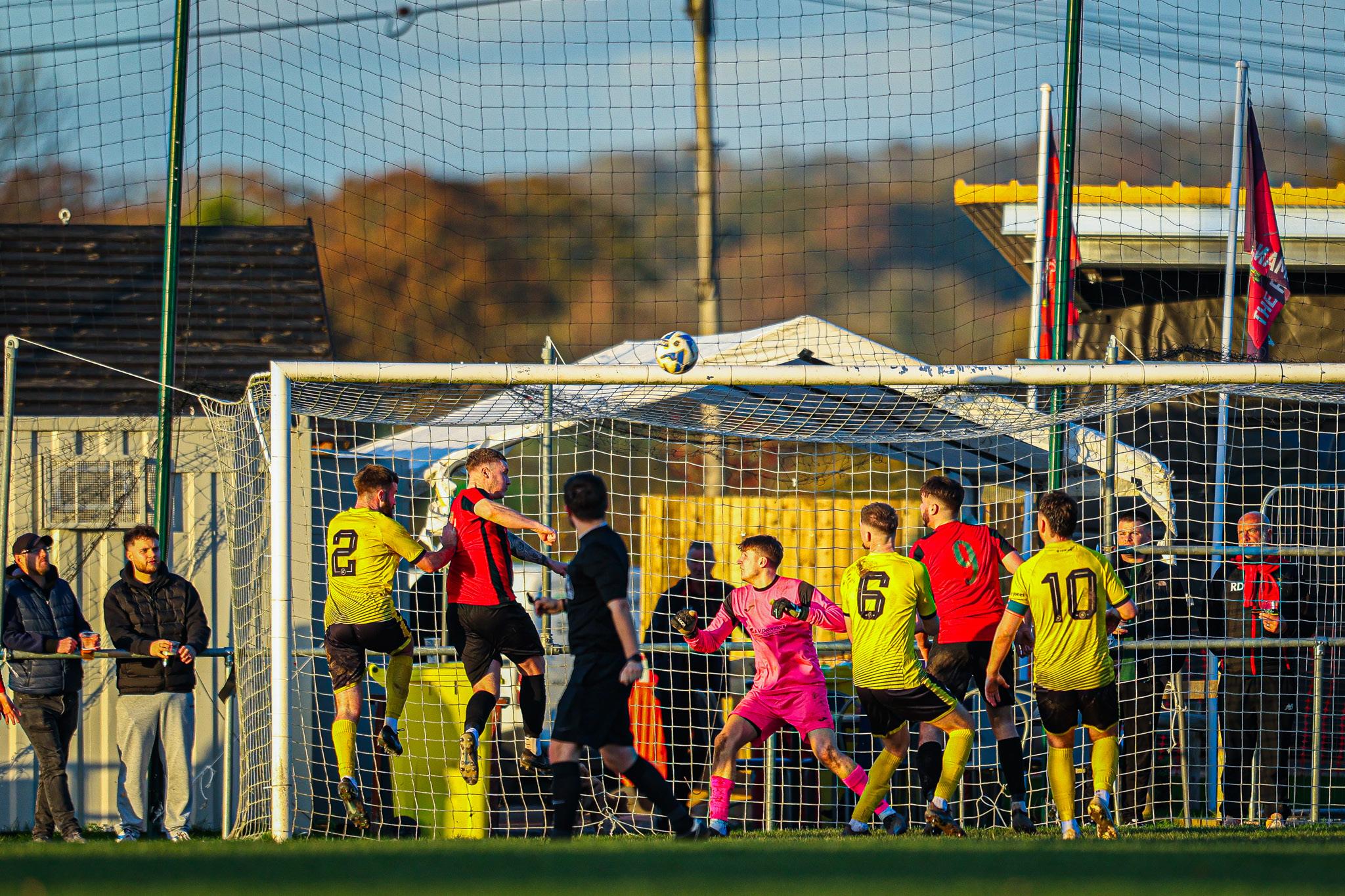 from 22 yards that was inches wide of the post. The decisive moment came in the 82nd minute, when Ollie Burgundy delivered a superb corner to the back post and when Wall’s