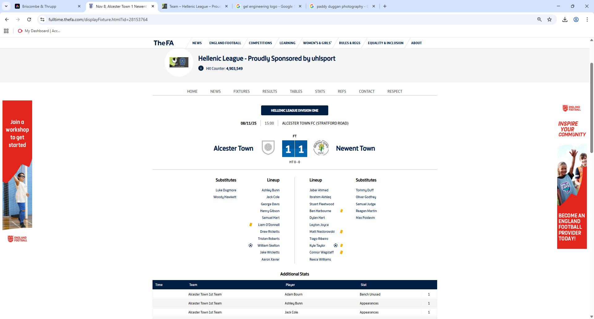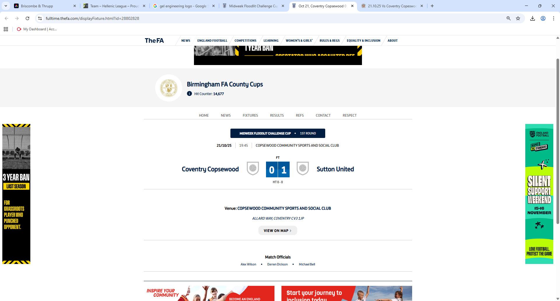 Today, we return to Hellenic League Division One action as we take on Brimscombe & Thrupp, and then on Tuesday evening, we’re back here under the lights for our Birmingham County Cup clash against Sutton United.
