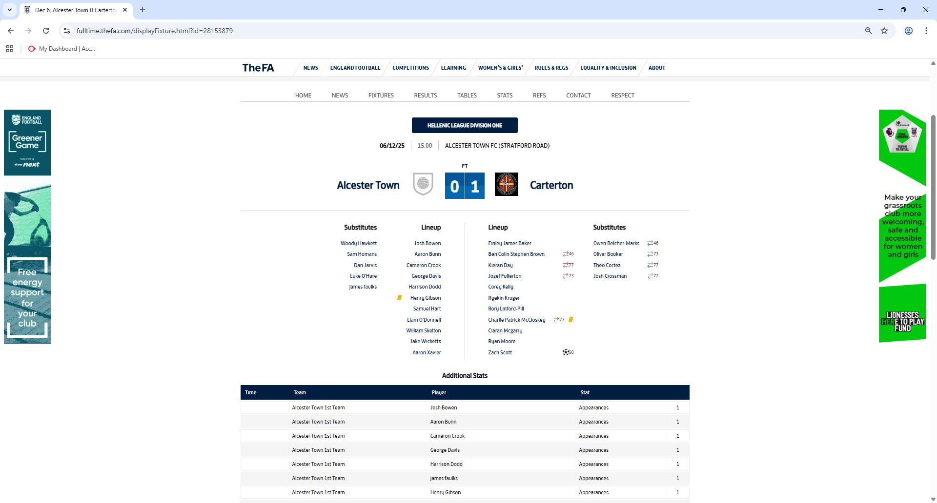 To their credit, Alcester responded positively and continued to push forward in search of an equaliser. There was no lack of effort or intent, with sustained pressure in the final third, but Carterton defended resolutely and limited the hosts to half-chances.