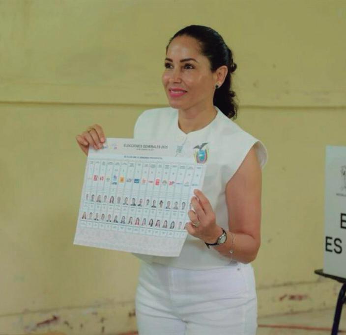 La candidata a la Presidencia del Ecuador, Luisa González, acudió a su recinto electoral en el norte de Manabí.