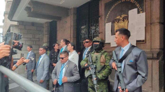 Abad llegó acompañada de la jueza Nubia Vera, quien había declarado inválida la suspensión que la administración de Noboa le impuso. Vera, tras convocar una audiencia para evaluar el cumplimiento de dicho fallo, se trasladó a la puerta de la Vicepresidencia para constatar que Abad no podía ingresar.