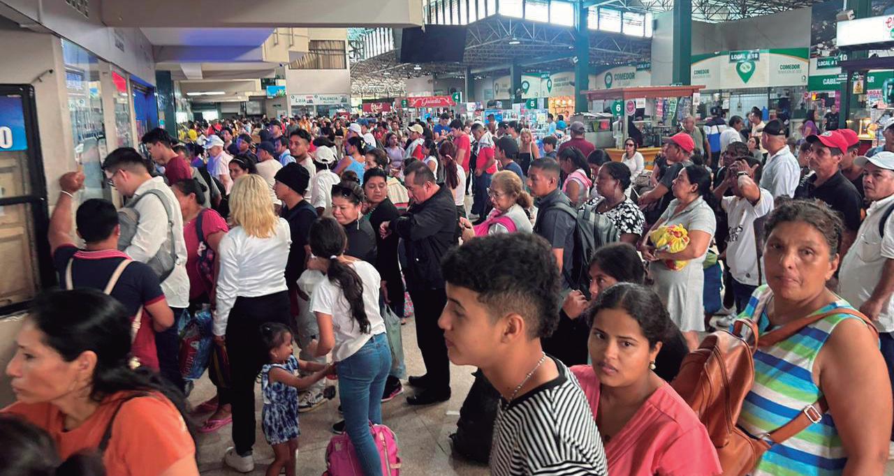 de origen. Los andenes de salida lucían repletos de pasajeros con maletas, bultos, niños y hasta mascotas.