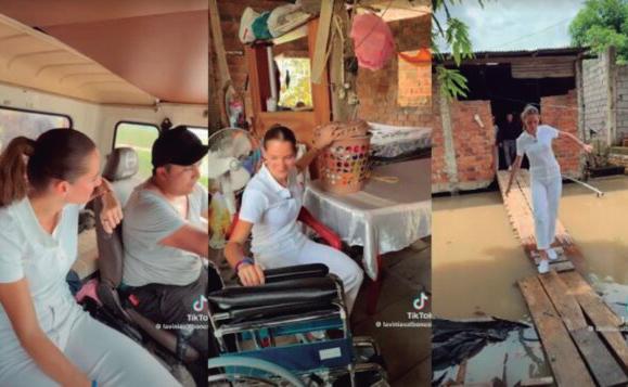 Valbonesi publicó un video en su cuenta de TikTok, en el que se la ve subiendo a una grúa para cruzar los tramos inundados, ya que la mayoría de los vehículos necesitan de este traslado para evitar daños. Así llegó a los sectores más afectados de Babahoyo, donde entregó varias ayudas. “Nada puede con nosotros, ni las lluvias. Creo que de eso se