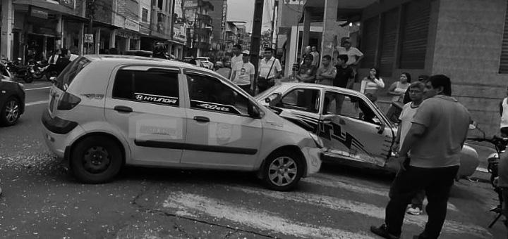 Quevedo. Una colisión se produjo al mediodía de este jueves entre un taxi amarillo y un automóvil particular en la intersección de la Av. Bolívar y calle Cuarta, en el centro de Quevedo. El incidente ocurrió cuando el taxi de servicio público, que transportaba a tres pasajeros, circulaba por la Av. Bolívar con dirección hacia el cerro