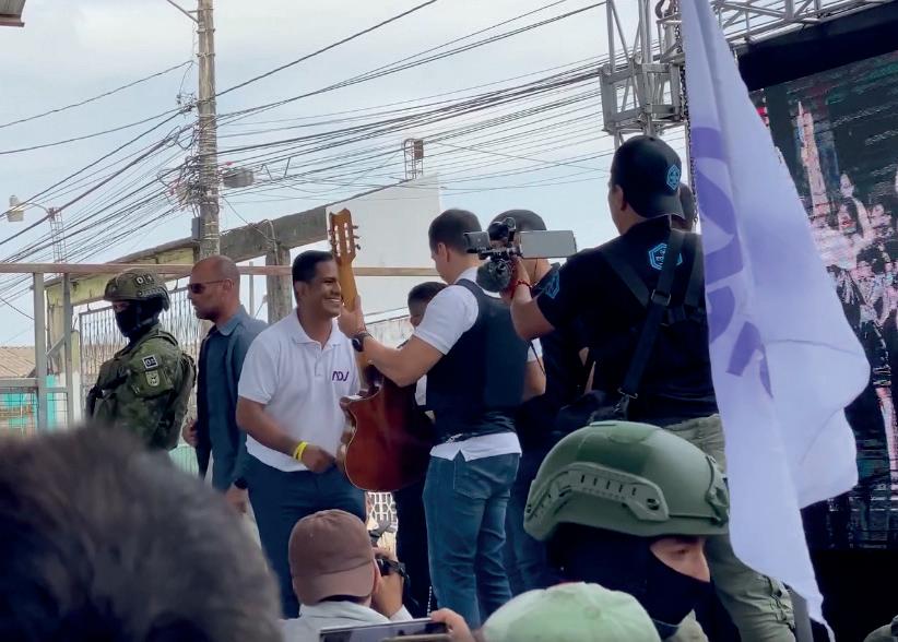 “Queda muy poco para terminar las campañas y quedan menos de semanas para tener un nuevo Ecuador, para que nuestros jóvenes, no pasen desapercibidos, falta poco para que brille la justicia y no vamos a solapar las pendejadas de los políticos de siempre", puntualizó Noboa. En su mitin político entonó una guitarra y recibió desde una tarima a cientos de simpatizantes que apoyaron su visita como el excandidato a alcalde por Crecer, Javier Nagua. Luego de su recorrido por las calles de Babahoyo, hizo escala en la Casa Blanca, para atender a los medios de comunicación.