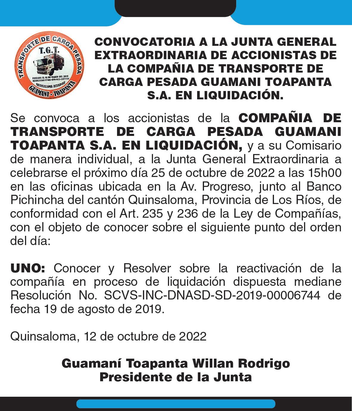 Lo que comunico a usted para los fines legales con siguientes, advirtiéndole la obligación que tiene de se ñalar casillero judicial para las notificaciones correspon dientes, dentro de los veinte días posteriores a la tercera y última publicación de esta Citación, caso contrario será declarado en rebeldía. Quevedo, 14 de julio del 2022 Ab. Nadia Petita Rosado Pita.Msc.