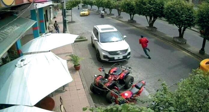 QUEVEDO • Tres sujetos fueron sorprendidos por varias detonaciones que hizo un ciudadano desde el interior de un local cuando estos intentaban asaltar a un cliente. Según los momentos captados por una cámara de vigilancia, eran tres sujetos los que iban a cometer el robo. Uno que vestía de jean y camisa roja fue quien exigió las llaves del carro, de pronto llegó su compinche y por atrás registró a su víctima.