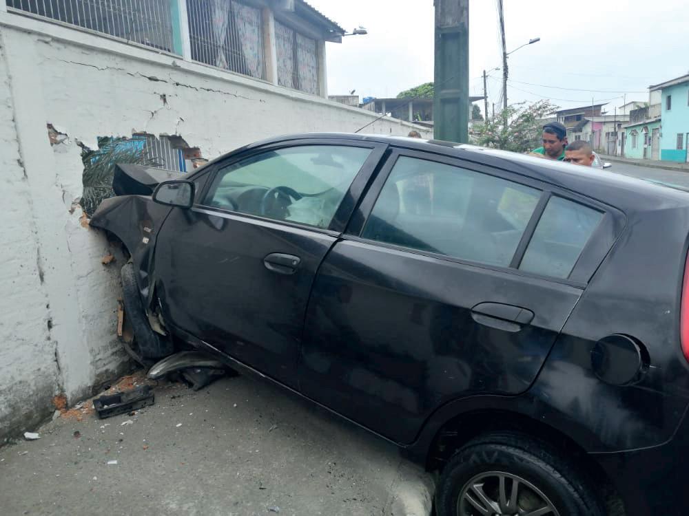 QUEVEDO • Aunque sus ocupantes resultaron ilesos, este automóvil se impactó el martes 11 de octubre contra el cerramiento de la U.E.Isaac Montes. Los daños materiales son cuantiosos.