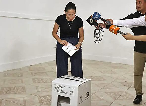 Con ropa negra y ligera la candidata señaló que ‘Este era un día en que vamos a hacer historia’ y dijo que viajaría a Quito para esperar los resultados. Mientras que el candidato de ADN 7, Daniel Noboa; muy por la mañana acompañó a su esposa Lavinia Valbonesi a sufragar en un recinto electoral en el norte de Guayaquil y luego ambos se dirigieron, en medio de un impresionante despliegue militar, hasta Olón en la provincia de Santa Elena, en donde sufraga el mandatario. Noboa estuvo acompañado de sus hijos pequeños a quienes los hizo participar de su votación y colocó uno a uno a ambos lados y entregó la papeleta a su pequeña hija para que la depositara en la urna.