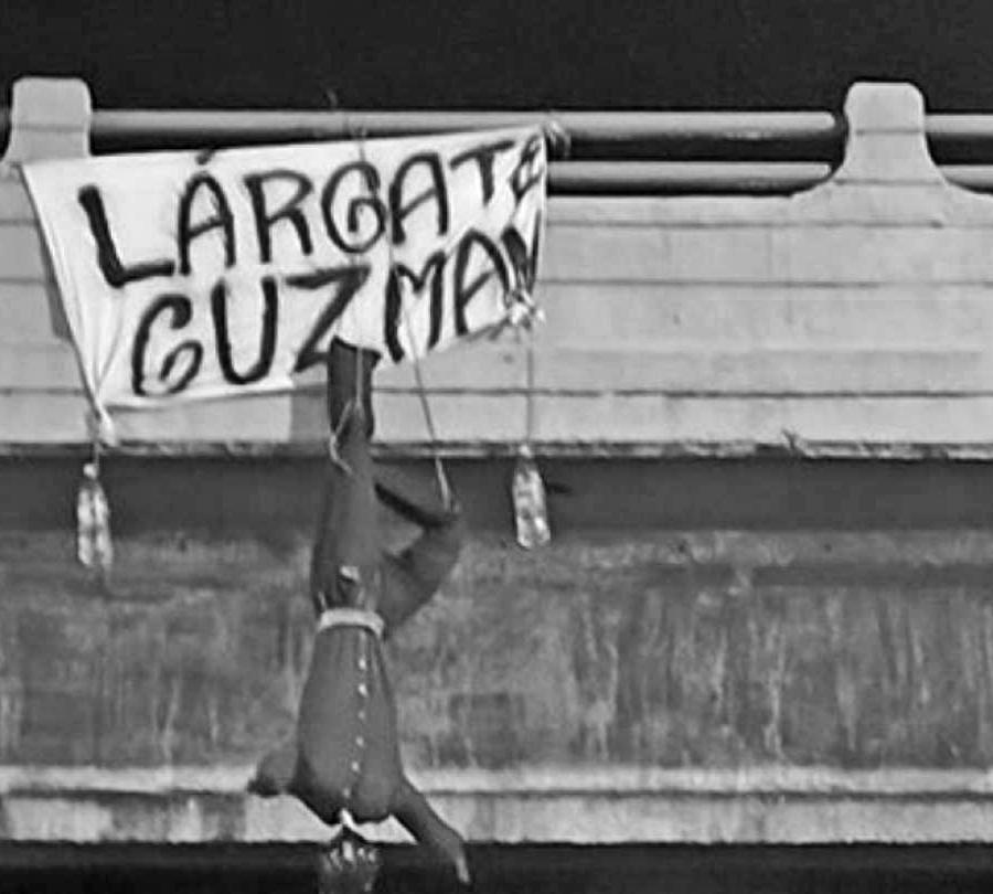 la figura suspendida en un puente peatonal, simulaba un cuerpo humano suspendido y estaba acompañada por un cartel que decía“Lárgate Guzmán”, que provocó sorpresa entre quienes pasaban por el sitio. Las autoridades confirmaron que no se trataba de un cadáver, lo ocurrido generó inquietud entre las personas.