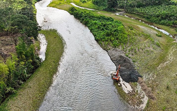 QUINSALOMA. Con el objetivo de mitigar los riesgos por inundaciones y salvaguardar la integridad de las zonas agrícolas, la Alcaldía de Quinsaloma ejecuta la construcción de muros de protección en las riberas del río Umbe, a la altura del recinto Achotillo. Esta obra de infraestructura preventiva responde a una planificación estratégica liderada por el alcalde Cristhian Aldaz González para enfrentar la próxima temporada invernal. Los trabajos, que avanzan a ritmo acelerado, buscan blindar tanto las viviendas de las familias