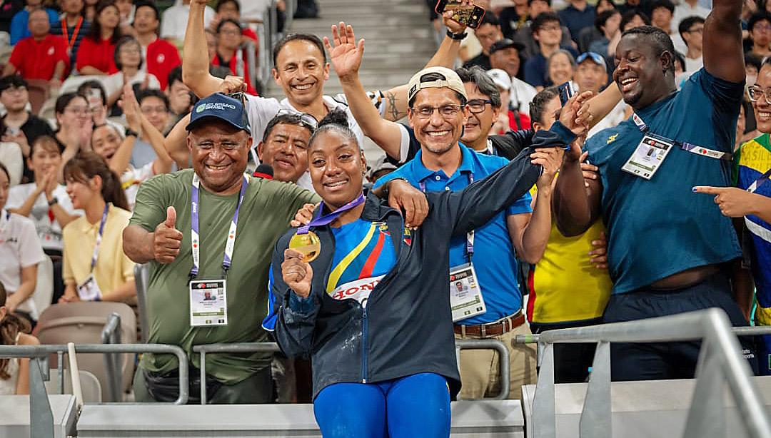 ranking de la temporada, tomó el control de la final en su segundo intento, cuando clavó la jabalina en 65,12 m. Desde entonces, ninguna rival pudo desbancarla. La esmeraldeña había llegado en estado de gracia: en la clasificación ya había firmado un récord nacional con 63,25 m, que mejoró en la final para cerrar una consagración perfecta.