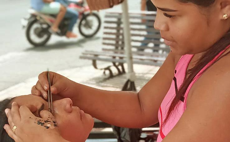 Nicole Ponce, una joven de 21 años, llegó a Ecuador hace cinco años desde Venezuela con el sueño de emprender. Hace dos años, junto a su cuñada, decidió montar un negocio de colocación de pestañas y pigmentación de cejas que hoy en día es un éxito. El camino no ha sido fácil. Nicole estudió la técnica en su país natal y, al llegar a Ecuador, invirtió 50 dólares en los materiales básicos, como pegamento, pinzas y pestañas. El negocio comenzó en la calle 7 de Octubre y Séptima, para luego ser reubicado en la calle June Guzmán y Octava, donde atiende a su clientela de martes a domingo, de 09:30 a 17:00.