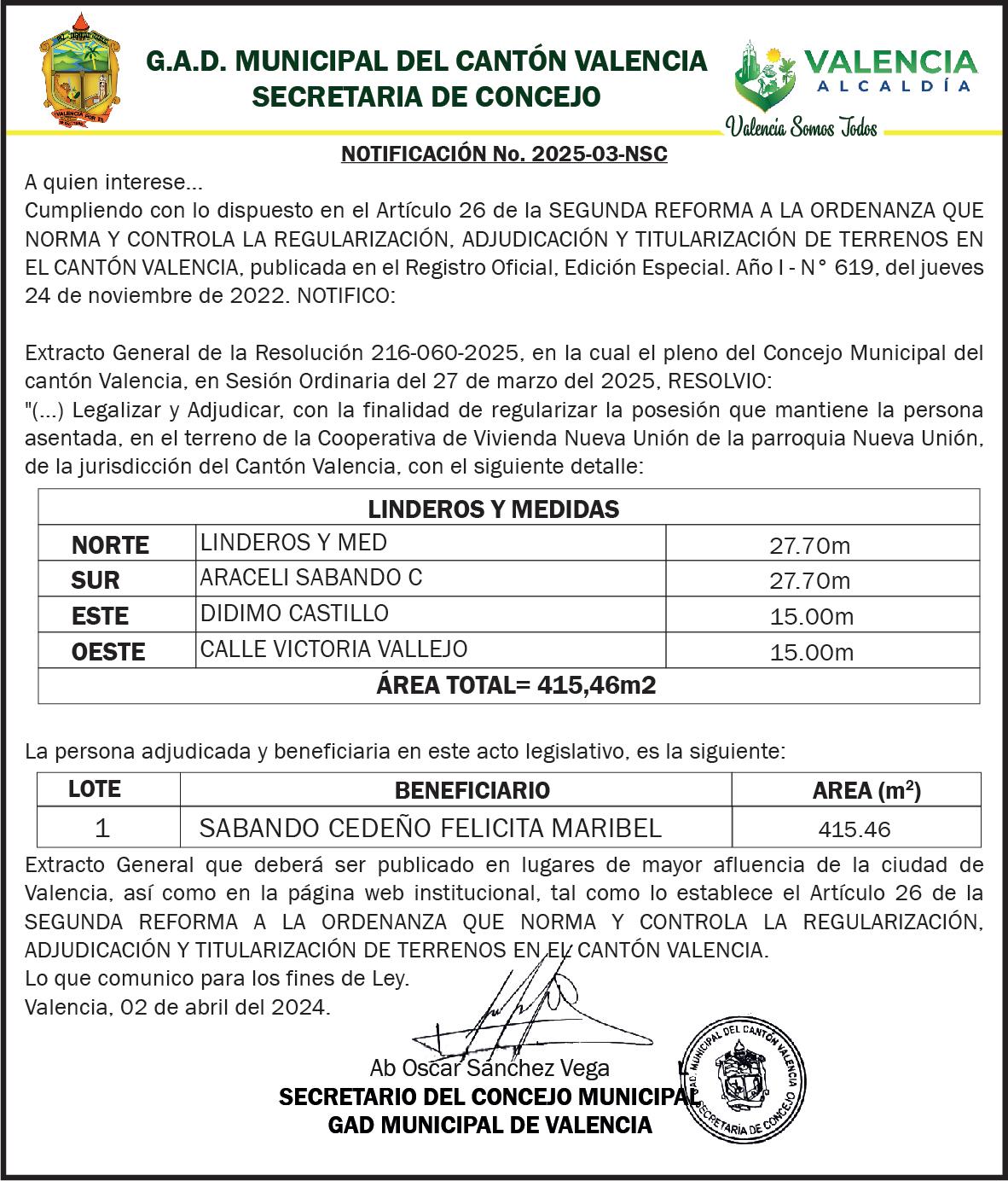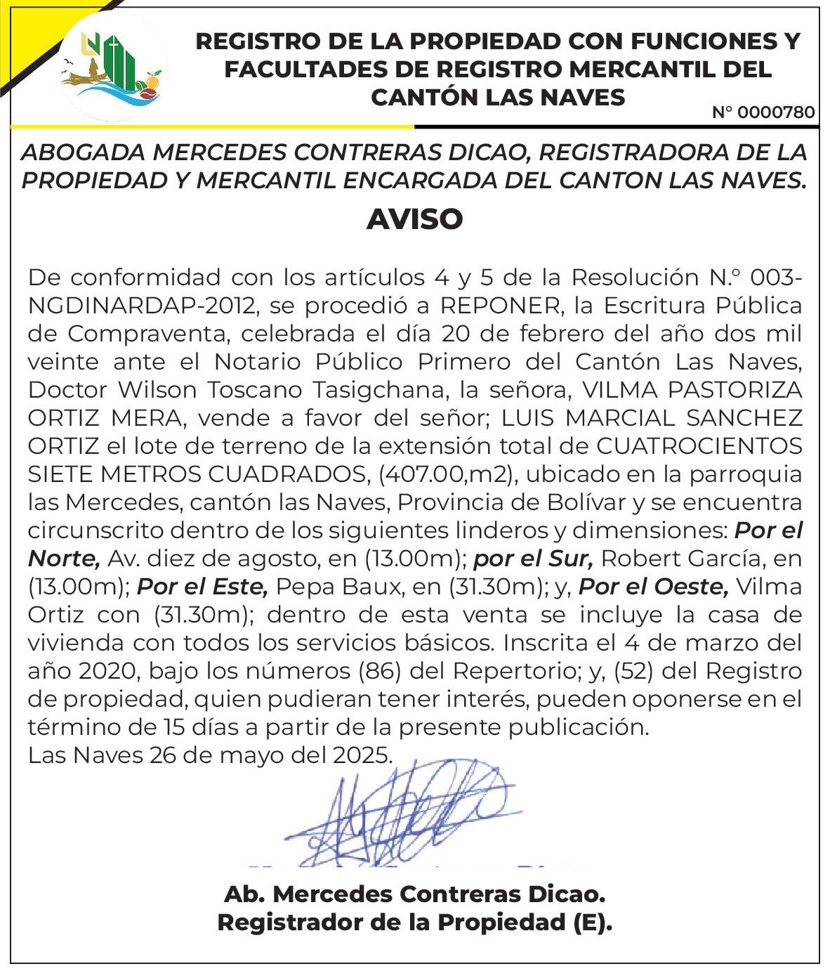 JUEZ DE LA CAUSA.Ab. Jimmy Iza Barahona, Juez Titular de la Unidad Multicompetente con sede en el Cantón Mocache -Los Ríos. Lo que comunico a usted, para los fines legales pertinentes, previniéndole de la obligación que tiene de señalar casilla judicial y/o correo electrónico, para futuras notificaciones, dentro de los veinte días posteriores a la tercera y última publicación de este extracto, caso contrario se lo considerará y se continuará el trámite en rebeldía. Mocache, Mayo 20 del 2025.