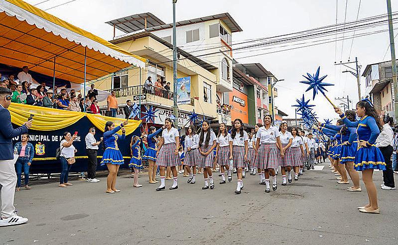 Mocache. Con un vibrante desfile cívico, la ciudadanía mocacheña conmemoró el 29° aniversario de la cantonización de ‘El Paraíso Escondido’. La Av. 28 de Mayo se vistió de gala, con balcones engalanados y tarimas repletas de vecinos que, junto a comerciantes, llenaron de color y fervor la celebración.