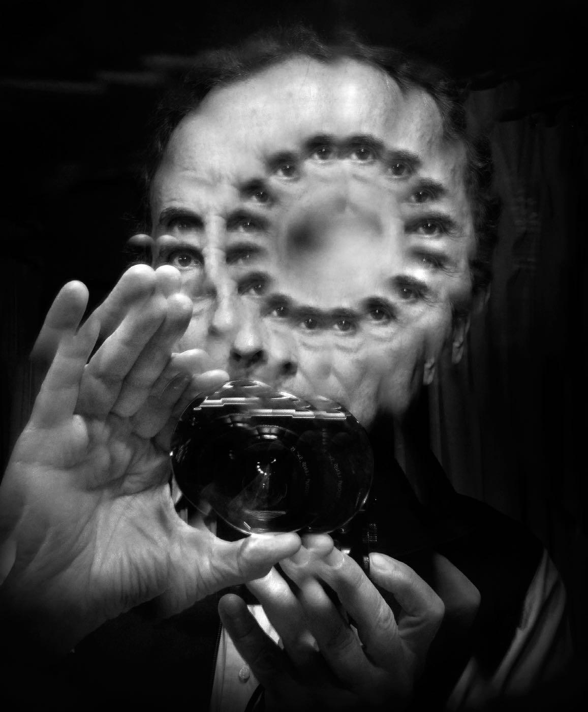 En la cámara de su cabeza, ectoplasmas de los muertos, texturas espirituales vagan buscando su hogar; en la caverna secreta de Sessa hay pantallas que reflejan espectrales huellas de luz perdida, diurno sol, nocturna luna; irisados prismas evocan primaveras verdes, otoños llameantes, donde ocultos fantasmas aguardan que la emulsión los revele; capturados con un chasquido, encerrados donde durmieron mil alboradas, ahora regresan del sueño por designio del cazador de imágenes que los atrapó con su lente y los lleva a guaridas nocturnas. Allí, en aguas agridulces, él revive horas pasadas donde los espectros rondan en traslúcida nieve, volviendo las caras hacia gentes como ellos y tú y yo; una raza multitudinaria se funde en un solo rostro allí donde un cielo plural bordea un singular ojo cristalino.