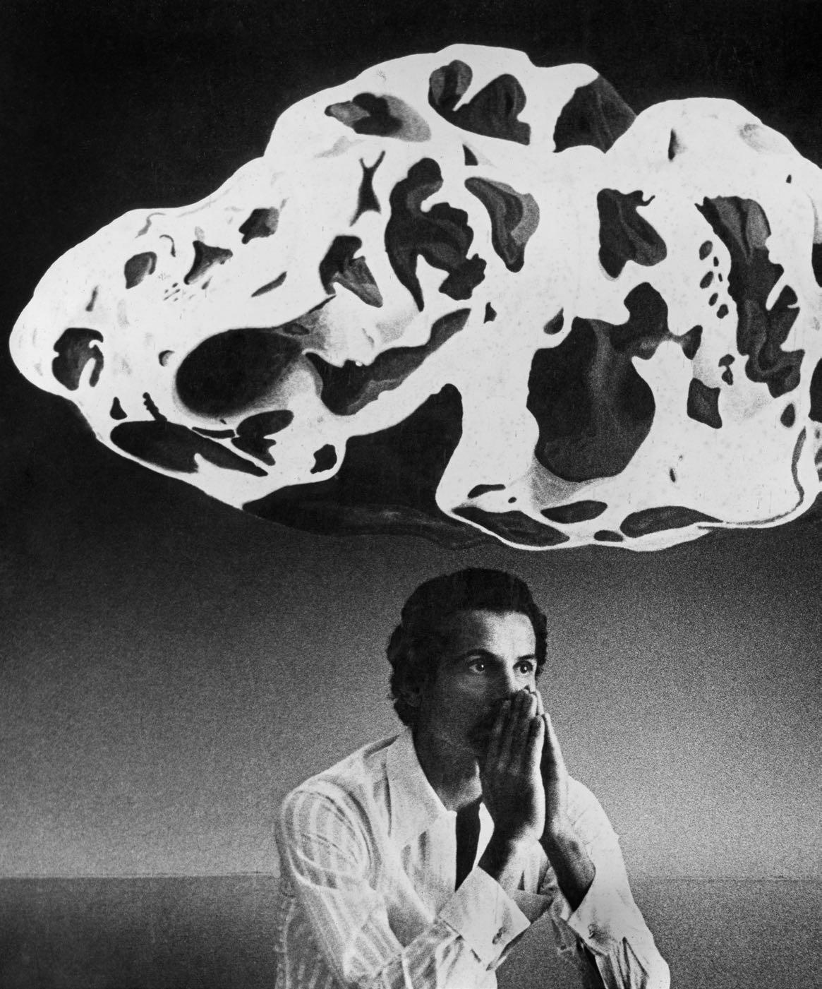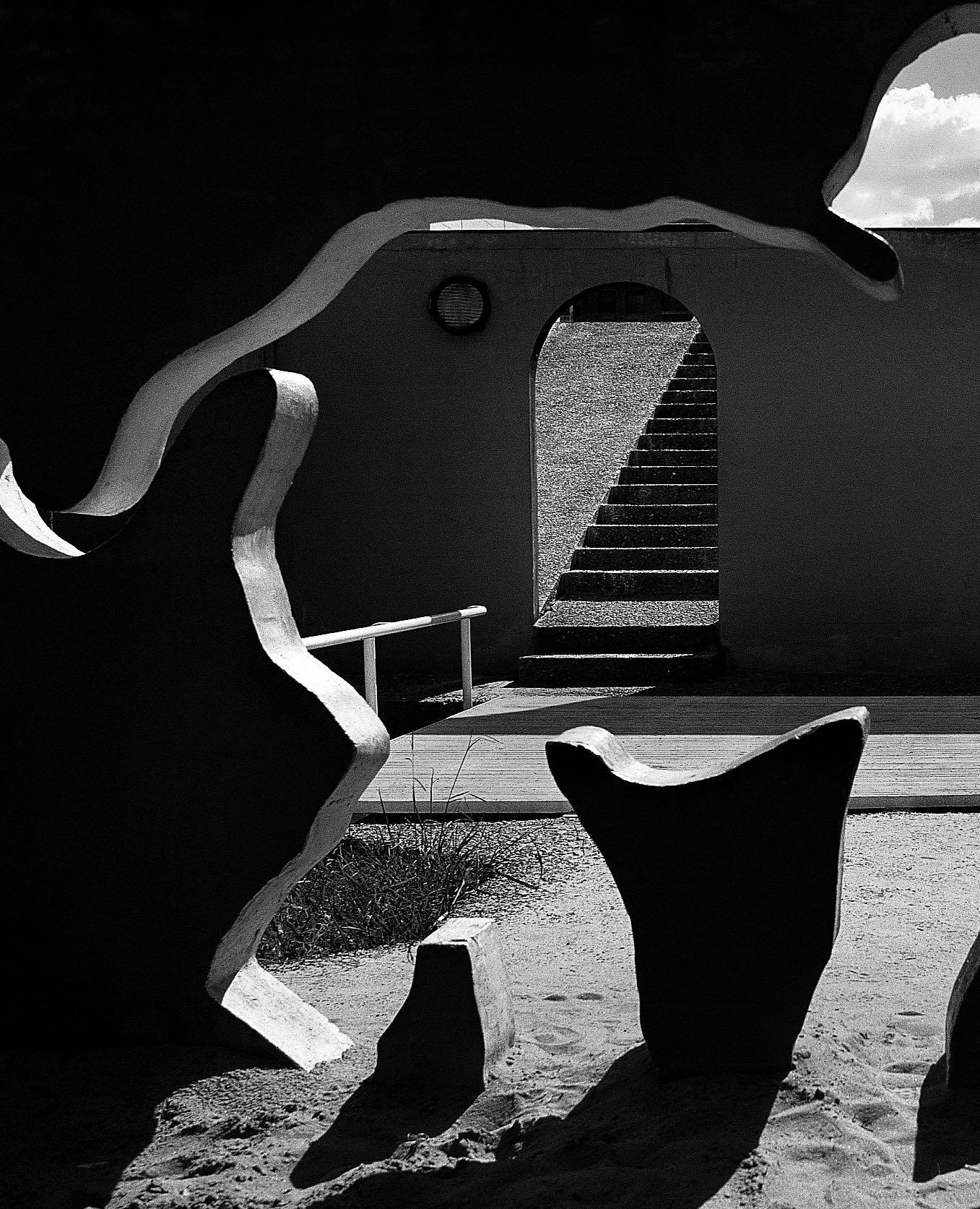 All of this verges on the ridiculous unless you scan Aldo Sessa’s mysteries. Then you can imagine him in a dark room beckoning his images out of nothing to shape the familiar. What was not slowly becomes. It is like staring into a cloudy mirror that, breathed upon, evaporates the mist so a familiar thrusts through. A ghost implied but not revealed. One must dare describing how a photographer guesses at the unseen behind the seen, and traps both with a trigger finger that freeze-frames the ghost. So when the fog rises in the emulsion pan and melts to assume flesh or landscape, the superb photo combines both, substance and the implied, so closely fused that if you are not careful you think they are one.
