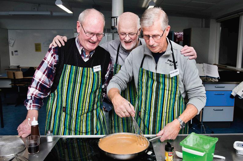 Der bliver bagt, revet gulerødder, snittet og formet, når ”Madspecialisterne” på Lundehaven mødes omkring et måltid – og naturligvis snakket en del. Her er der plads til alle hænder, også de, der ikke helt kan det samme som tidligere. Men det er der råd for.