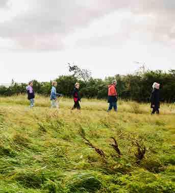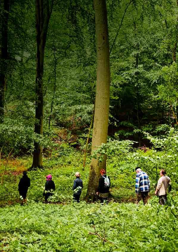 Deltagerne har netop lyttet til et indledende foredrag fra to eksperter i naturens sundhedsfremmende egenskaber. Og nu er de på vej ud i det, det hele handler om, nemlig naturen selv.