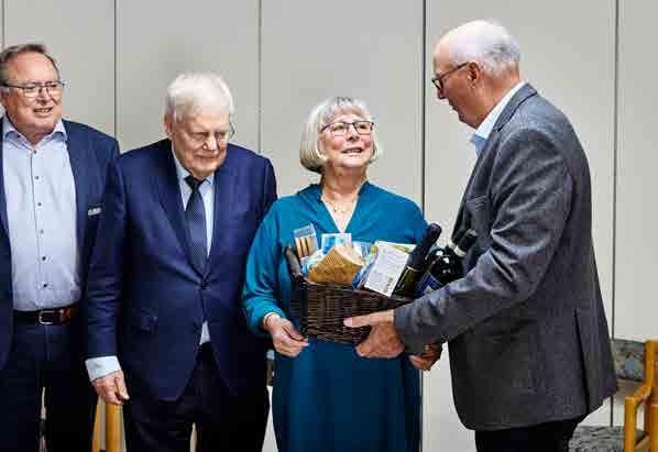 Æresbeviset gives for din store indsats i Ældre Sagen, Vojens. Siden du blev meldt ind i Ældre Sagen for godt 30 år siden, har du siddet som medlem af bestyrelsen i 25 år, heraf som formand i over ti år. Du har været aktiv inden for Koordinationsudvalget, også som formand. Du har ydet en stor og prisværdig indsats både lokalt og ikke mindst som stadig aktiv formand for distrikt 5 i mange år. Du er en fantastisk repræsentant for Ældre Sagen. En indsats helt ud over det sædvanlige.