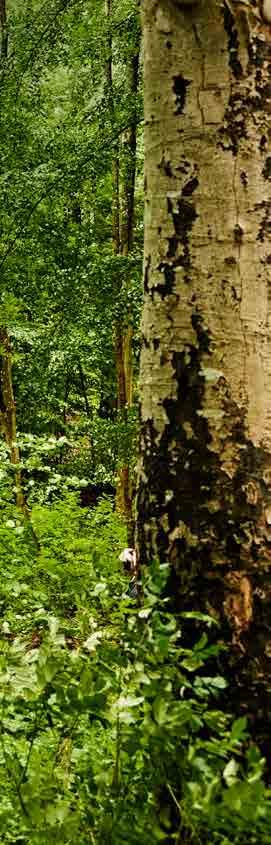 Menneskeflokken har bevæget sig gennem engen og ind i skoven. Og her sænker roen sig på en hel ny måde. I ly