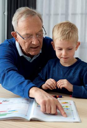 Som oftest bliver frivillige fra Ældre Sagen tilknyttet en lokal skole eller børnehave. De er med som en ekstra hånd i alt fra højtlæsning, brætspil og til at tegne og male. Det kan også være i en lektiecafé med læsetræning og hjælp i matematik og sprog – eller frivillige kan være en ekstra hånd på udflugter og i skolehaver. Aktiviteterne former sig ud fra lærere og pædagogers behov, den frivilliges interesser og børnenes alderstrin.