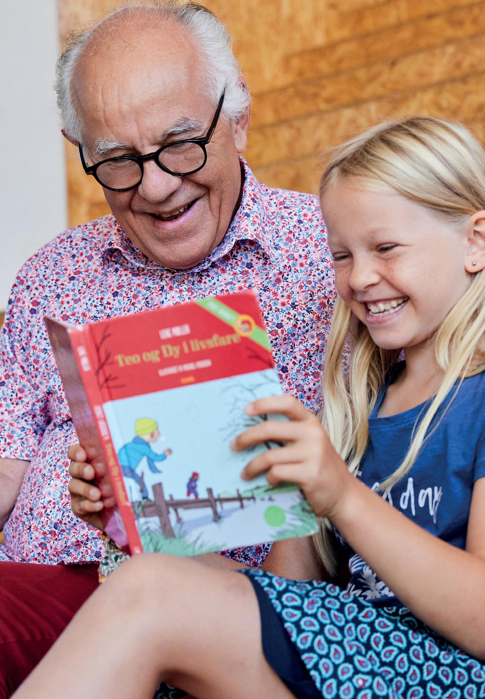 Vi samarbejder med skolebibliotekaren, som sørger for, at der står en kasse klar til os med bøger egnet til børn i 2. klasse. Det er bøger, som ikke er længere, end at vi kan nå at læse dem færdig med børnene.