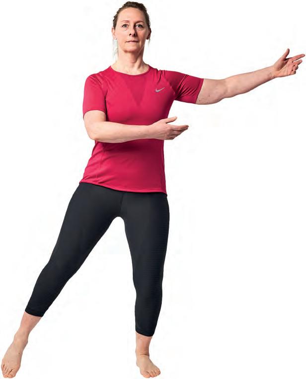I udgangspositionen er armene afspændte ned langs siden af kroppen. Under bevægelsen følger armene med til den ene side og den anden side. Udfør rotationerne i forskelligt tempo.