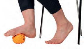 Sid fremme eller tilbage på stolen. Sæt den ene fod op på bolden. Rul foden systematisk igennem: start fx med