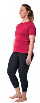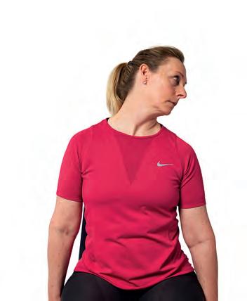 Roter kroppen til den ene side – vend tilbage til udgangspositionen – roter kroppen til den anden side. Gentag øvelsen. Vær opmærksom på, at afstanden mellem skuldrene og ørerene, forbliver den samme under hele øvelsen.