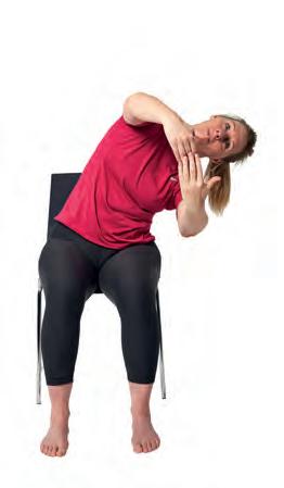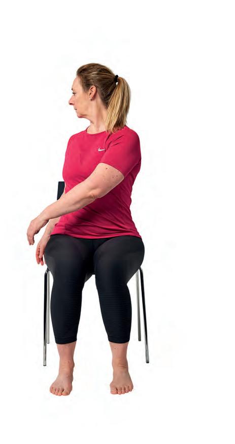 Sid fremme på stolen. Roter kroppen til den ene side – vend tilbage til udgangspositionen – roter kroppen til den anden side.