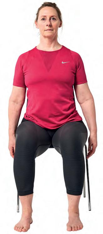 Sid fremme på stolen Fødderne placeres under knæene i hoftebreddes afstand. Sid på toppen af sædeknuderne, gør ryggen høj, hovedet er i forlængelse af rygsøjlen. Placer hænderne let på lårene.