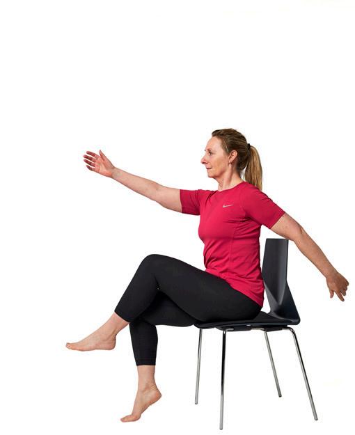 • De forskellige ting fx ”så tager vi højre ben frem, højre ben tilbage, højre ben frem og så ryster vi det lidt” udføres siddende på stolen.